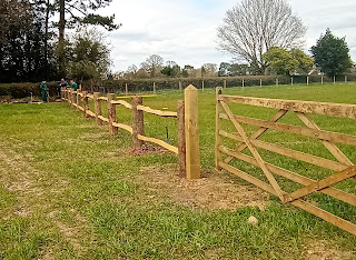 The last Sunday in March was both Mothers Day and the day the clocks moved forward so we decided to have a later than normal start at 10 am, at Styal. Six enthusiastic and hardworking MNTVolunteers arrived to put up the chestnut fencing by the Apprentice house at Quarry Bank Mill. This will divide a farmed field into two sections; the smaller section will have a pond and wildlife meadow and the larger section will continue to be farmed.